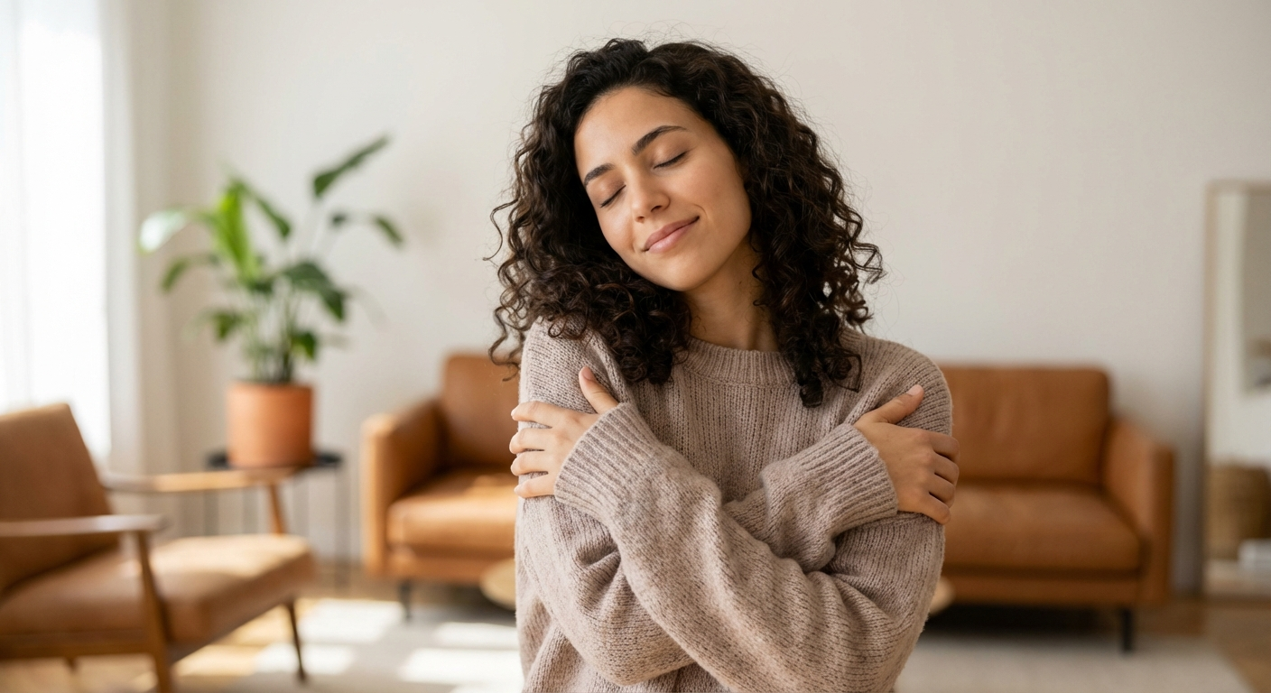 שלבו ידיים על החזה (יד ימין על כתף שמאל, יד שמאל על כתף ימין). טפטפו לסירוגין — ימין, שמאל, ימין, שמאל — בקצב איטי ועדין. זה בדיוק חיבוק הפרפר, ואפשר לעשות אותו בכל מקום.